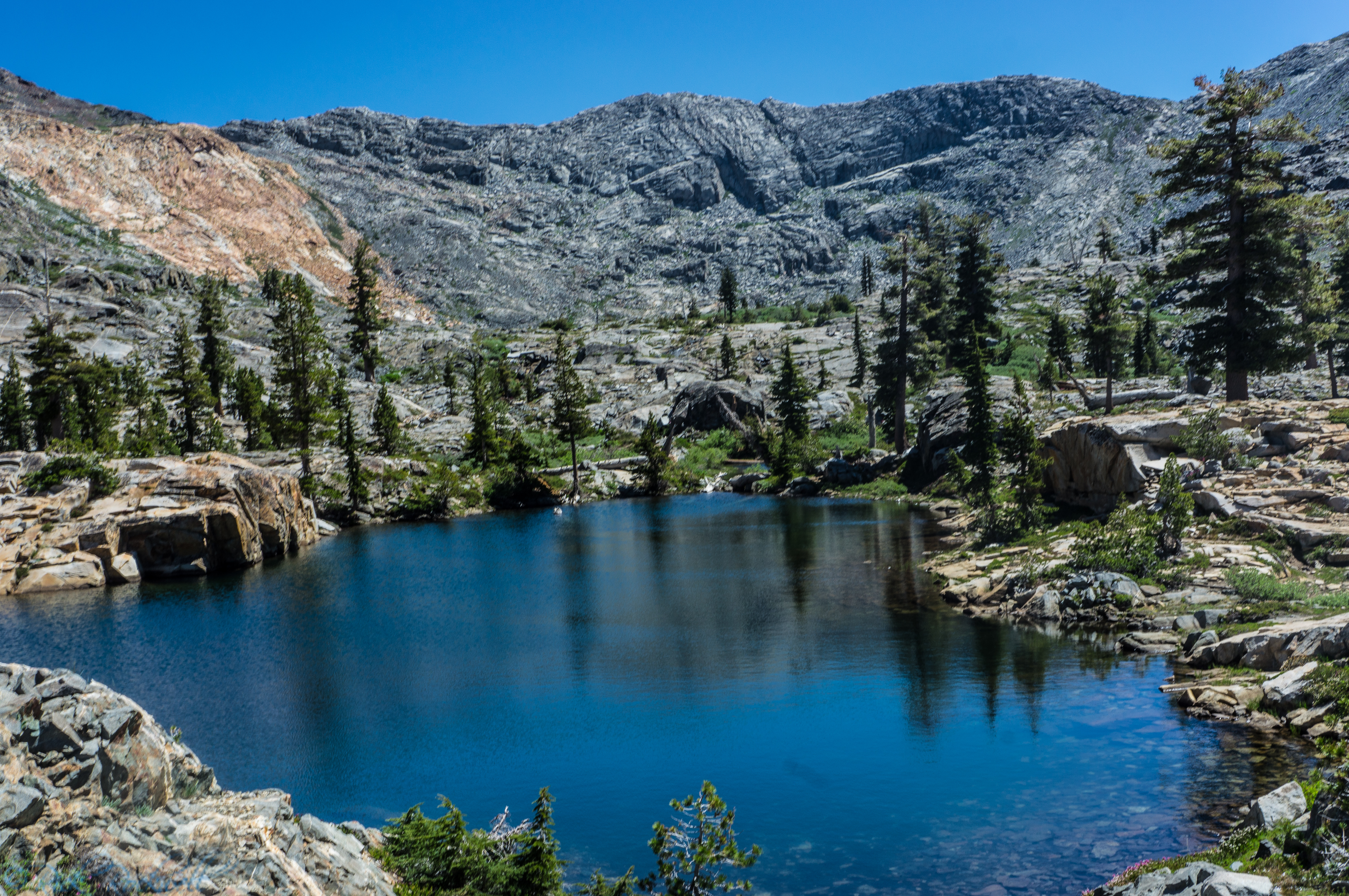 This lake is smaller than Twin Lakes, but it does offers the opportunity of jumping off some 12 foot high rocks into the water.